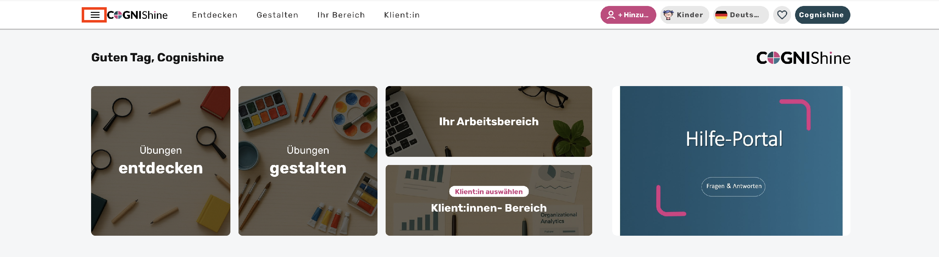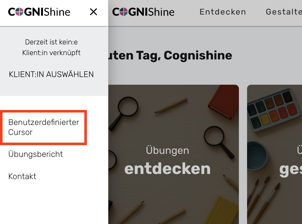 Um den Cursor an die sich verändernden Bedürfnisse Ihrer Klient:innen anzupassen, öffnen Sie das Menü in der oberen linken Ecke.