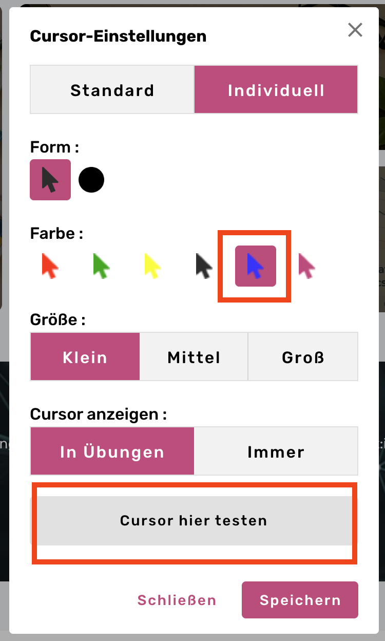 Klicken Sie auf „Speichern“, um Ihre Cursor-Einstellungen zu übernehmen.